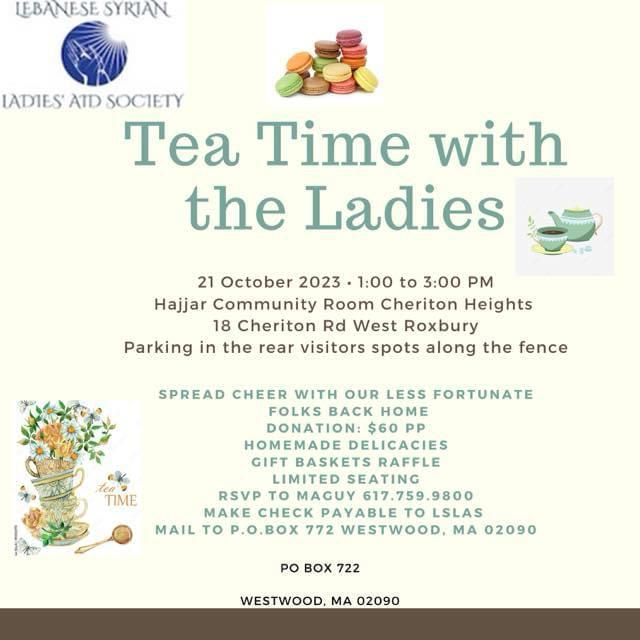 Join us on October 21st, 2023 for Tea Time with the Ladies at the Hajjar Community Room Cherriton Heights